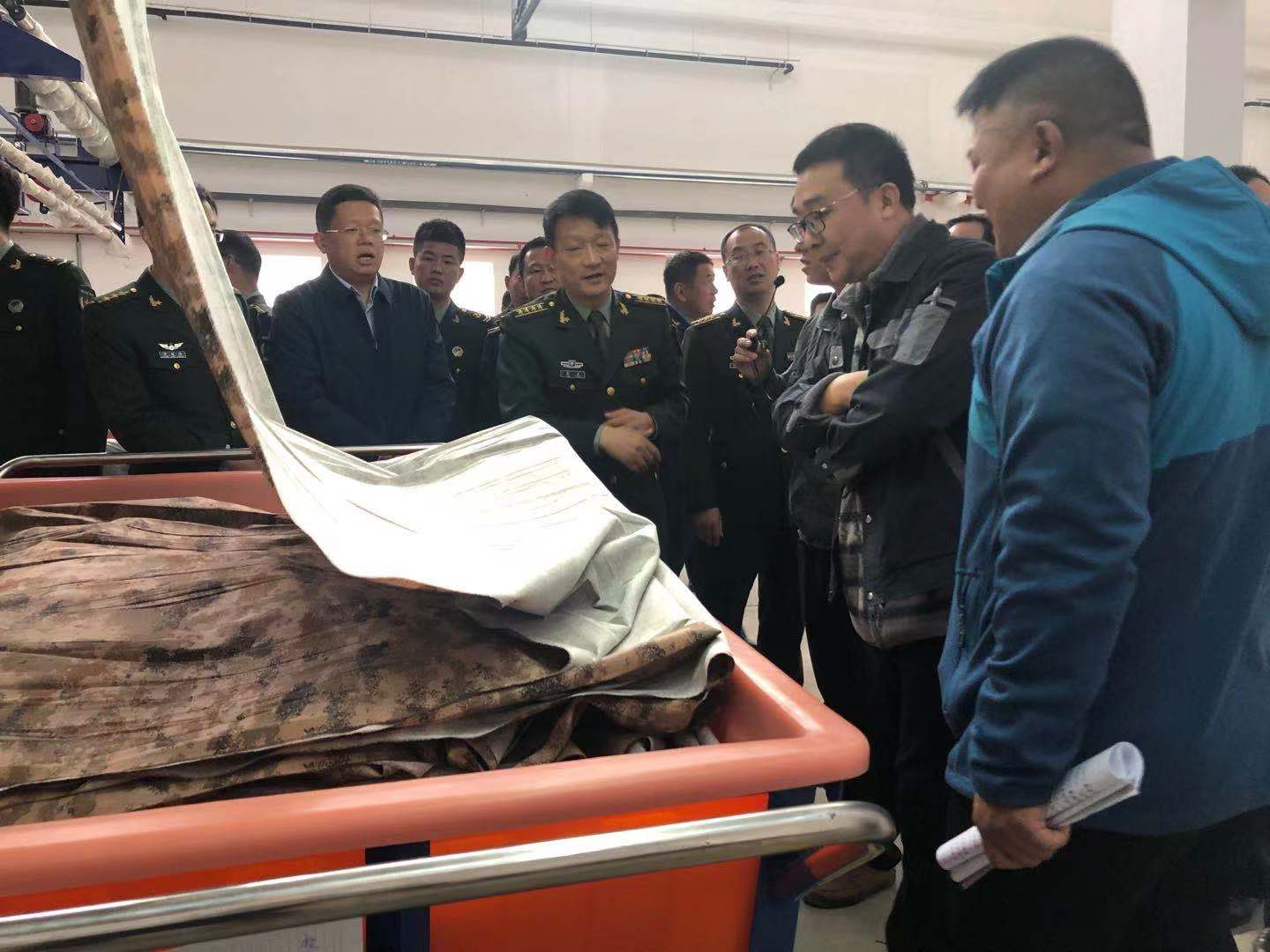 湯勇司令員及各領(lǐng)導(dǎo)實(shí)地參觀了公司智能化軍工被裝新材料生產(chǎn)線,并詳細(xì)了解我公司為國慶70周年閱兵獻(xiàn)禮的新型迷彩作訓(xùn)服材料。