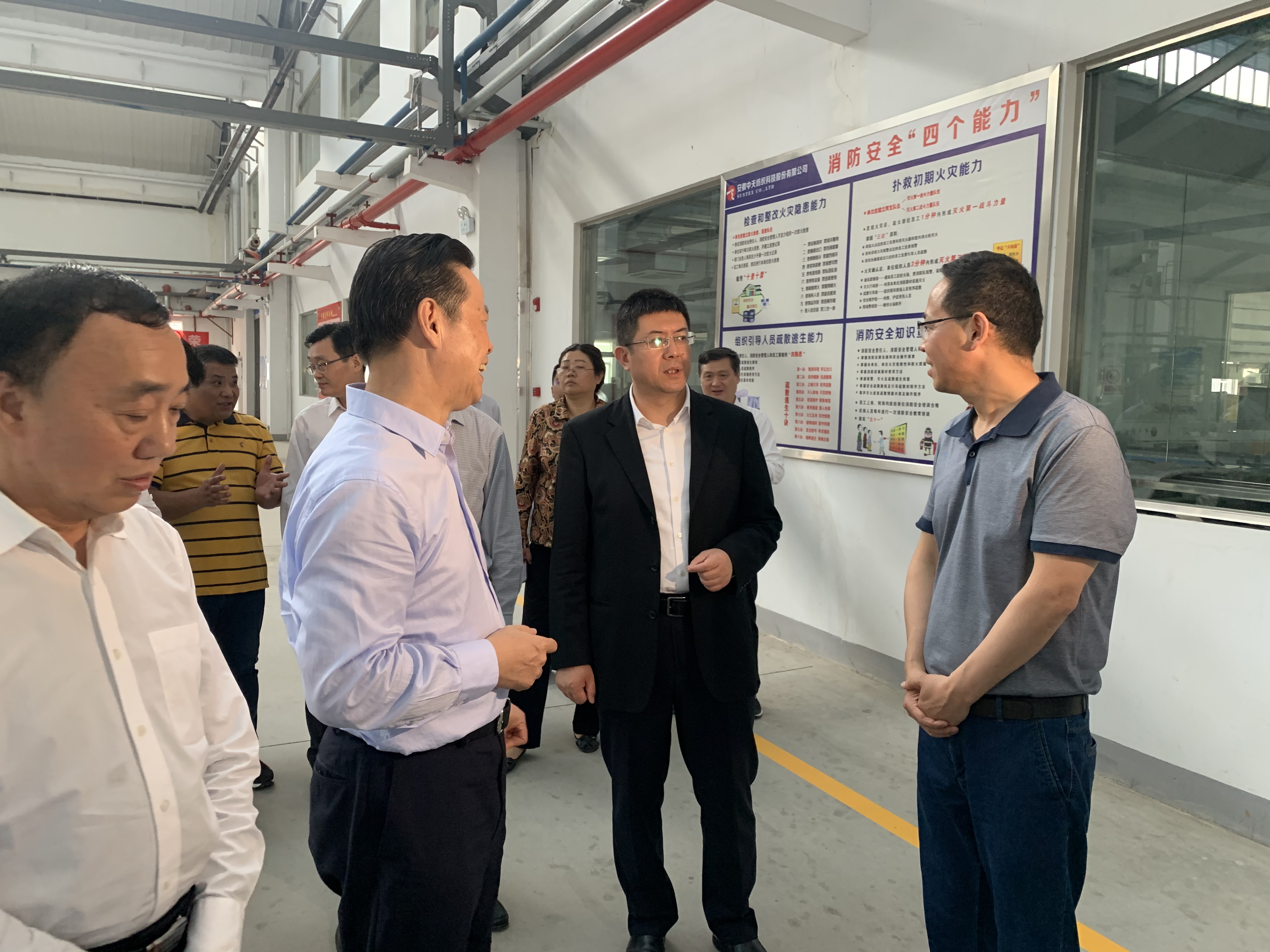 2021年05月07日下午,省政協主席 張昌爾,省政協秘書長 車敦安,省政協辦公廳副主任 馬艾青等領導一行在蕪湖市政府市長 單向前,蕪湖市政協主席 張峰,蕪湖市委常委、秘書長、宣傳部長 張志宏,蕪湖市政協副主席 陸雷陪同下蒞臨安徽中天科技調研指導工作,繁昌區委書記 向繼輝、繁昌區政協主席,區常委、政法委書記 張文寶陪同到訪。